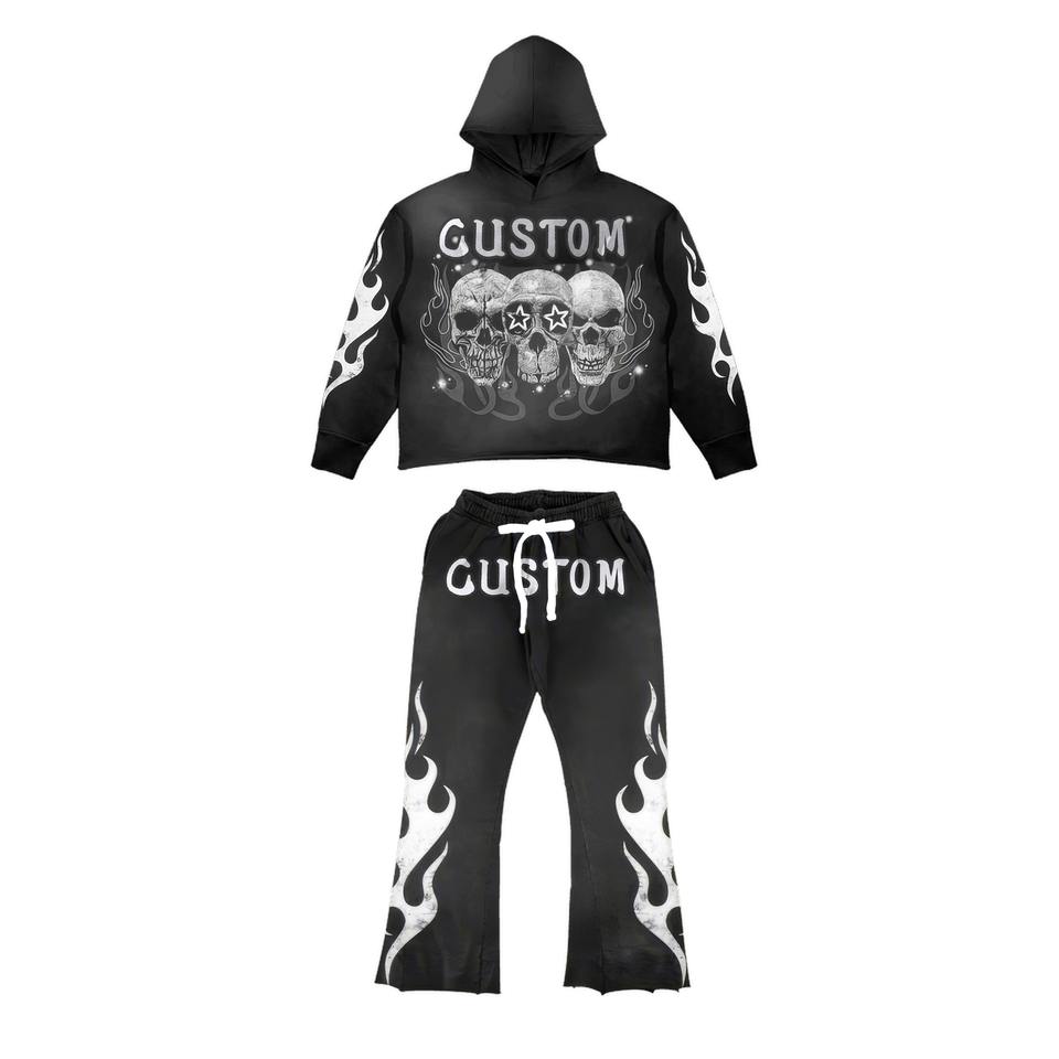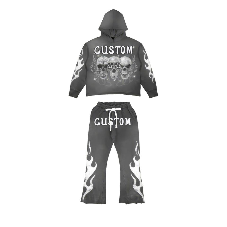 Pantalon à capuche surdimensionné délavé à l'acide personnalisé pour hommes ensemble Streetwear écologique pantalon de survêtement ensemble de sweat à capuche en coton survêtements pour l'hiver