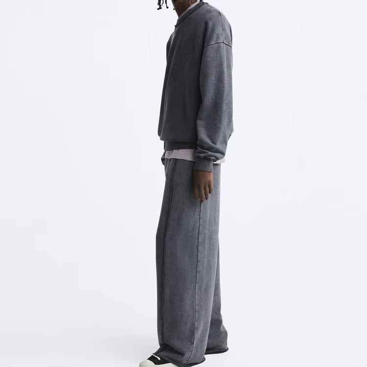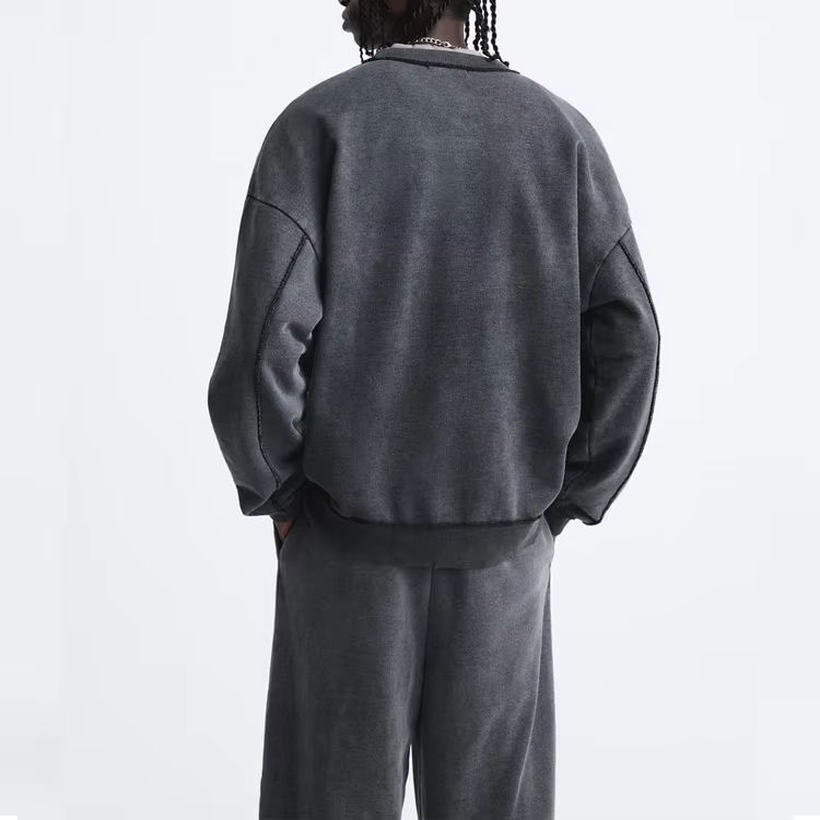 Ensemble de pantalons sweatshirt surdimensionnés à épaules tombantes délavés à l'acide pour hommes survêtement streetwear à col rond pour hommes sweatshirts à col rond pour hommes