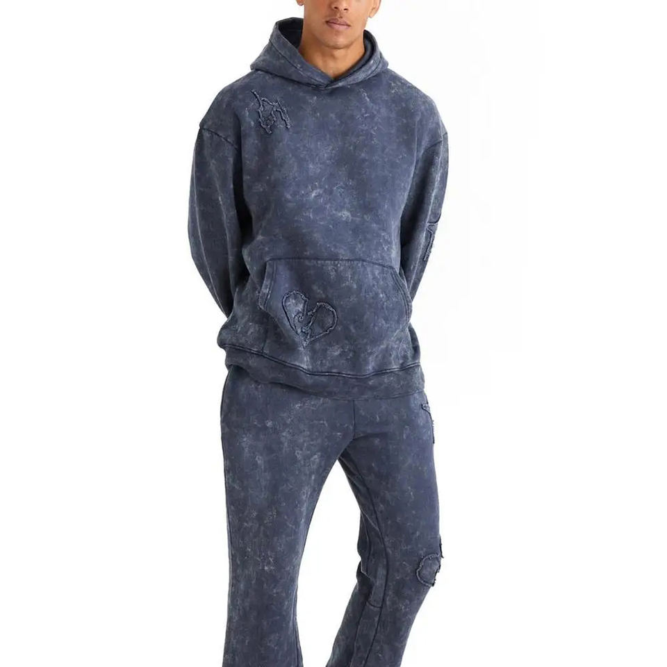 Ensemble de survêtement personnalisé pour homme, effet délavé et décoloré, avec sweat à capuche et pantalon de jogging en coton respirant, style streetwear, fournisseur