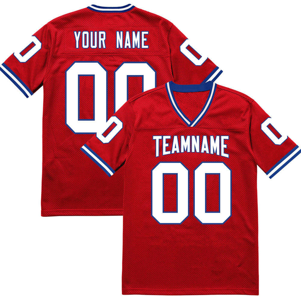 Maillot d'entraînement de football américain personnalisé pour homme, rouge, en maille, col en V, manches courtes, respirant, antibactérien, léger