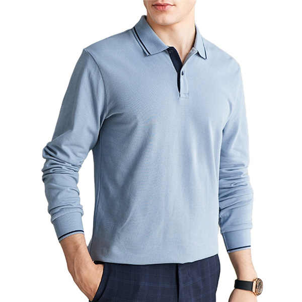 Polo d'affaires d'automne pour hommes personnalisé de haute qualité 100% polyester tricoté tissu à manches longues style boule de coton à la mode