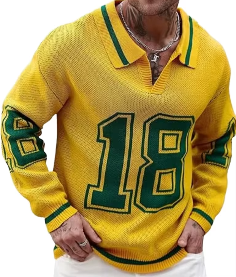 Pull tricoté personnalisé pour homme, col en V, manches longues, respirant, séchage rapide, avec motif graphique sur le devant, idéal pour l'hiver