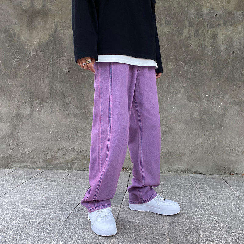 Pantalon en jean baggy personnalisé pour hommes pantalon en détresse à jambe droite pantalon taille basse lavage léger motif solide respirant pour le printemps