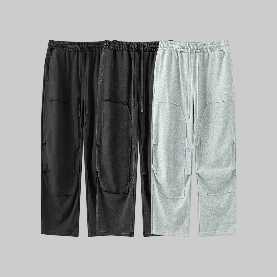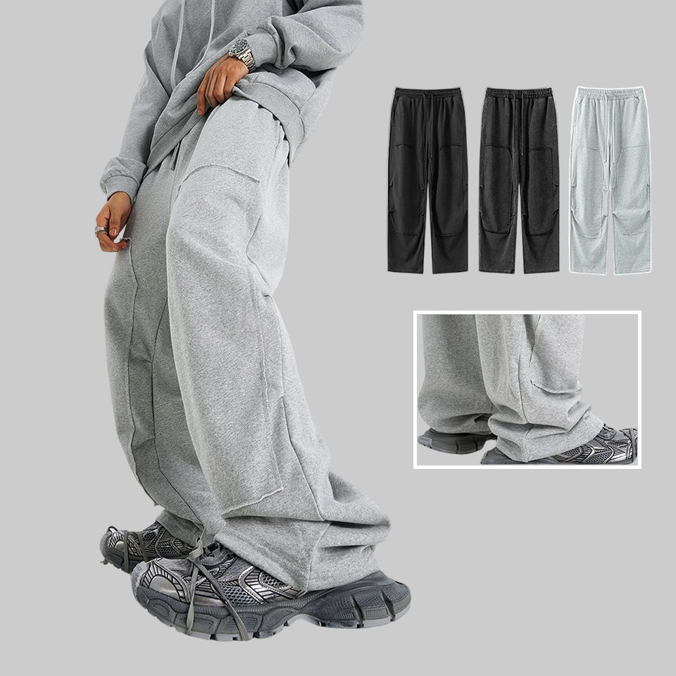 Pantalons de survêtement amples à jambes droites pour hommes, de haute qualité, en tissu French Terry, surdimensionnés, décontractés, streetwear, avec empiècements, lavés