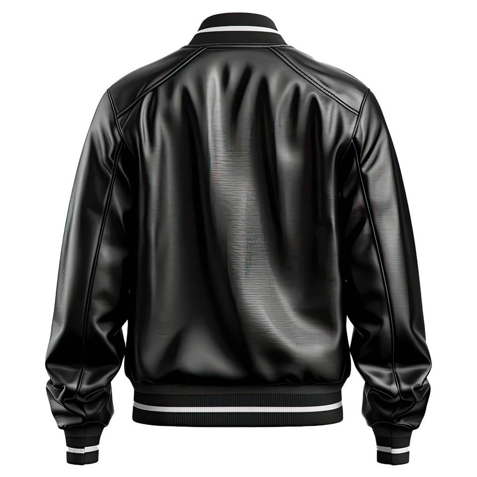 Veste de baseball pour homme personnalisée, noire, en véritable peau de mouton, douce, élégante, style varsity, design ample, tissu imperméable et écologique, nouvelle collection