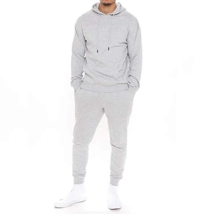 Custom Men's Blank Hoodies Jogger Pants Set High Quality French Terry 100% Organic Cotton Heavyweight Tracksuit for Men