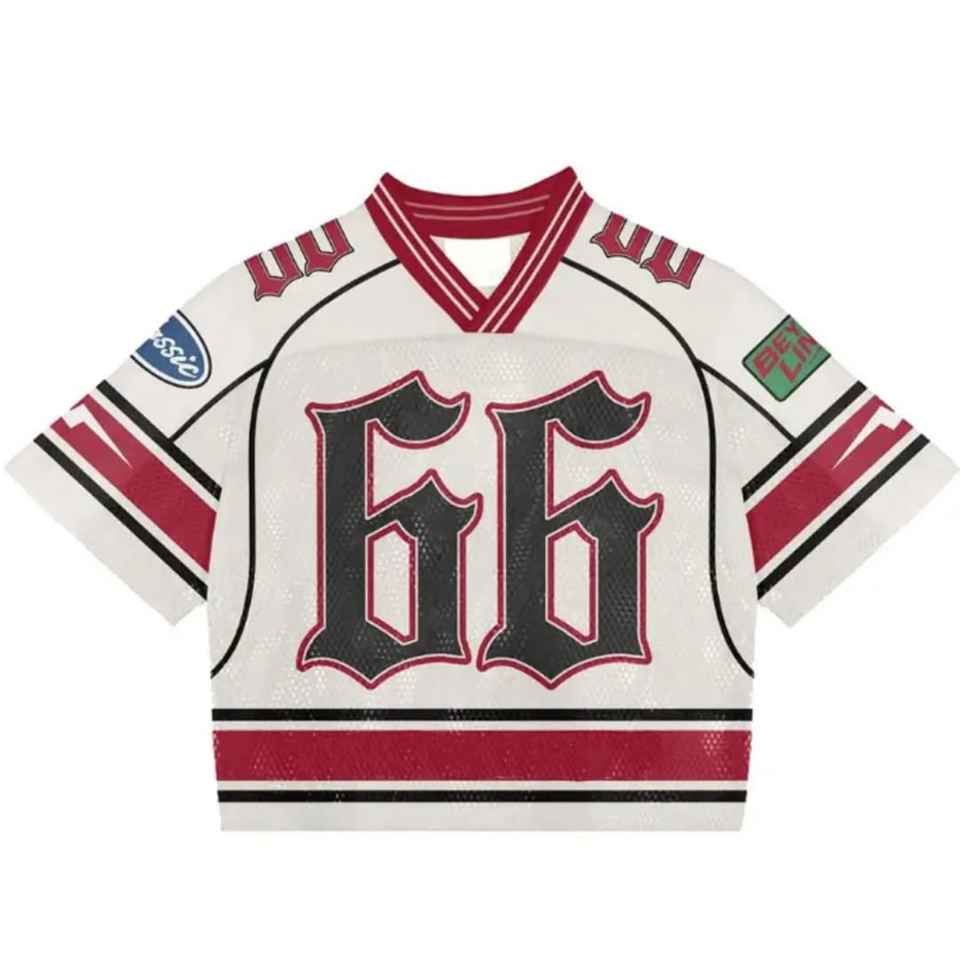T-shirt de sport vintage respirant pour homme, coupe carrée et courte, en jersey, style streetwear, avec imprimé rétro en maille pour football, basketball, soccer