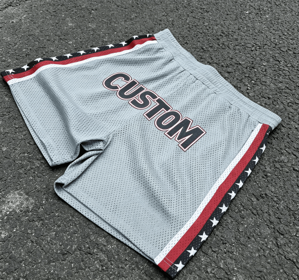 Shorts respirants en maille pour homme, taille élastique, style sportif, impression par sublimation, logo au dos