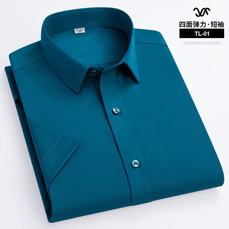Custom Men's Business Fashion Casual Short-Sleeved Shirts New Stretch Slim Breathable Iron-Free Solid Color Top