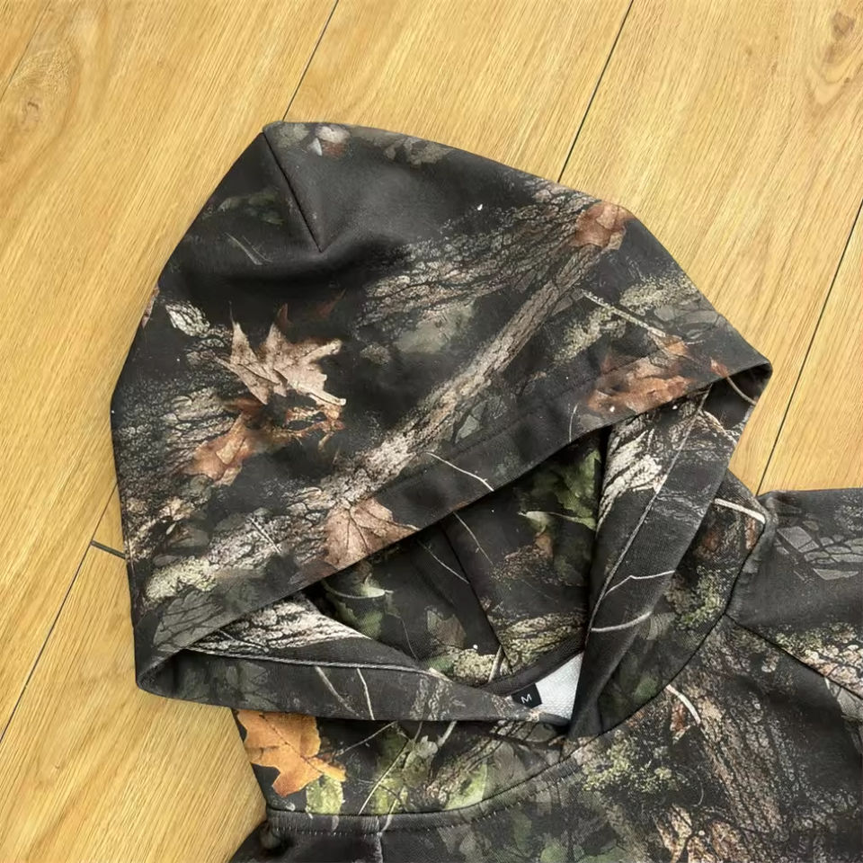 Sweat-shirt à capuche camouflage personnalisé pour homme, motif arbre, coupe oversize, streetwear, molleton épais, chasse, extérieur, prix usine