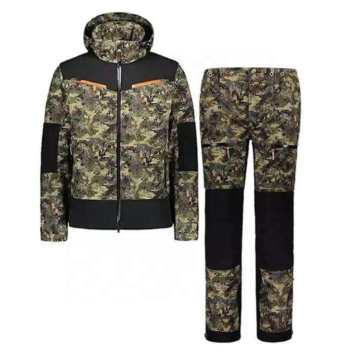 Survêtement de chasse et de pêche camouflage personnalisé pour homme en coton et polyester, 2 pièces, à capuche, vêtements de sport athlétiques