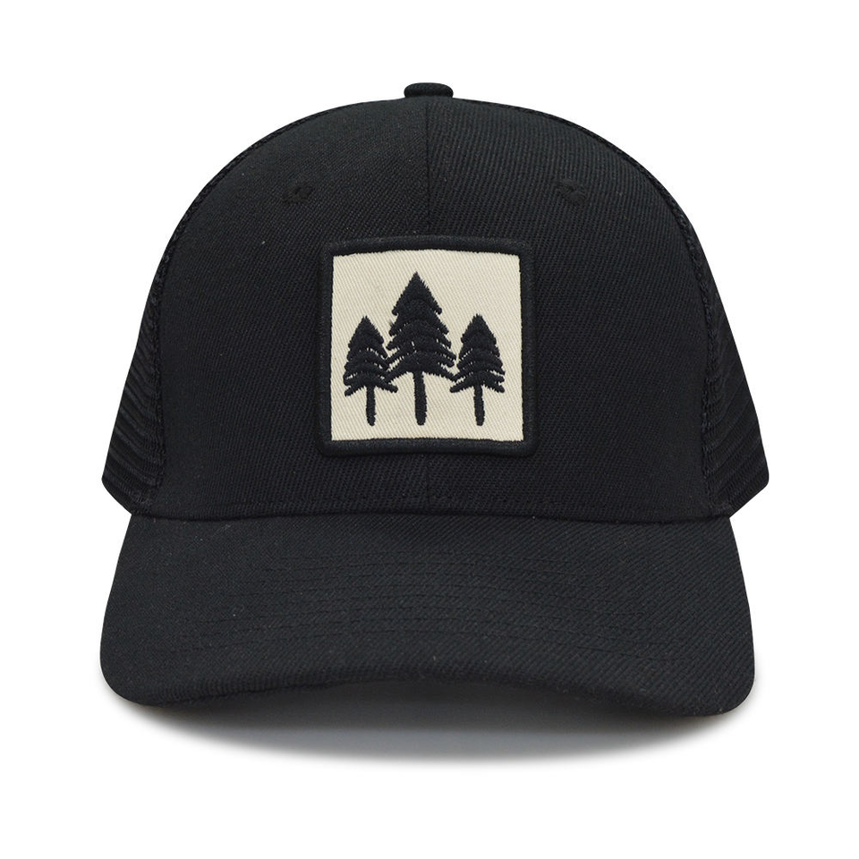 Casquette de camionneur en toile personnalisée pour hommes chapeau incurvé en filet avec impression bouffante mousse vierge noire unie pour tenue décontractée