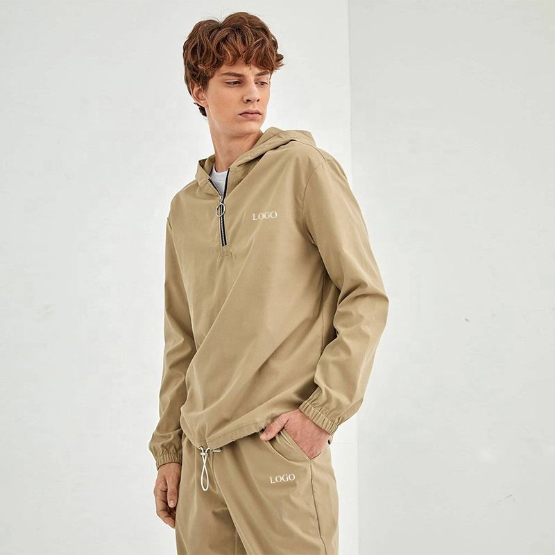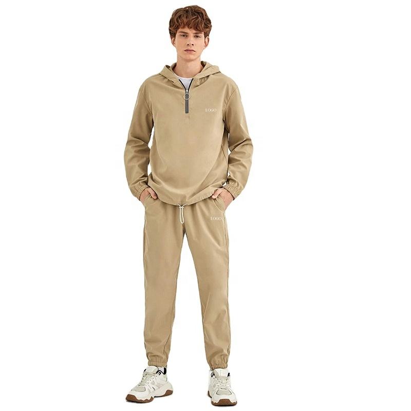 Ensemble décontracté deux pièces pour homme personnalisé, sweat à capuche épais 1/4 zip, pantalon de jogging à manches longues, survêtement d'hiver, 100% coton