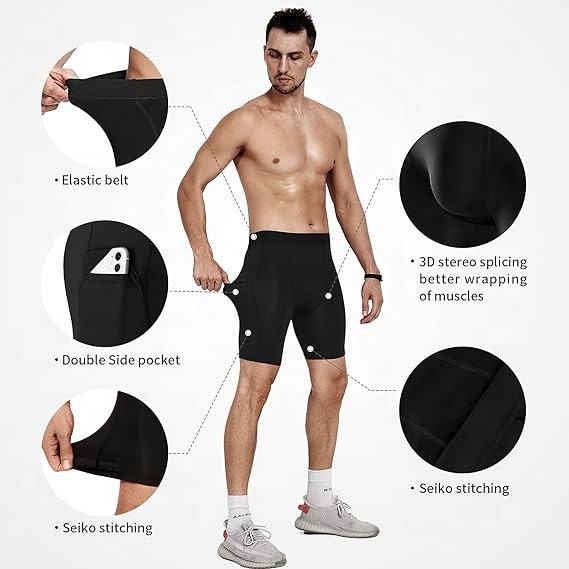 Shorts de compression personnalisés pour hommes – Tenue de sport et yoga en tissu Spandex – Anti-transparence, ajustés, confortables, taille élastique, haute qualité