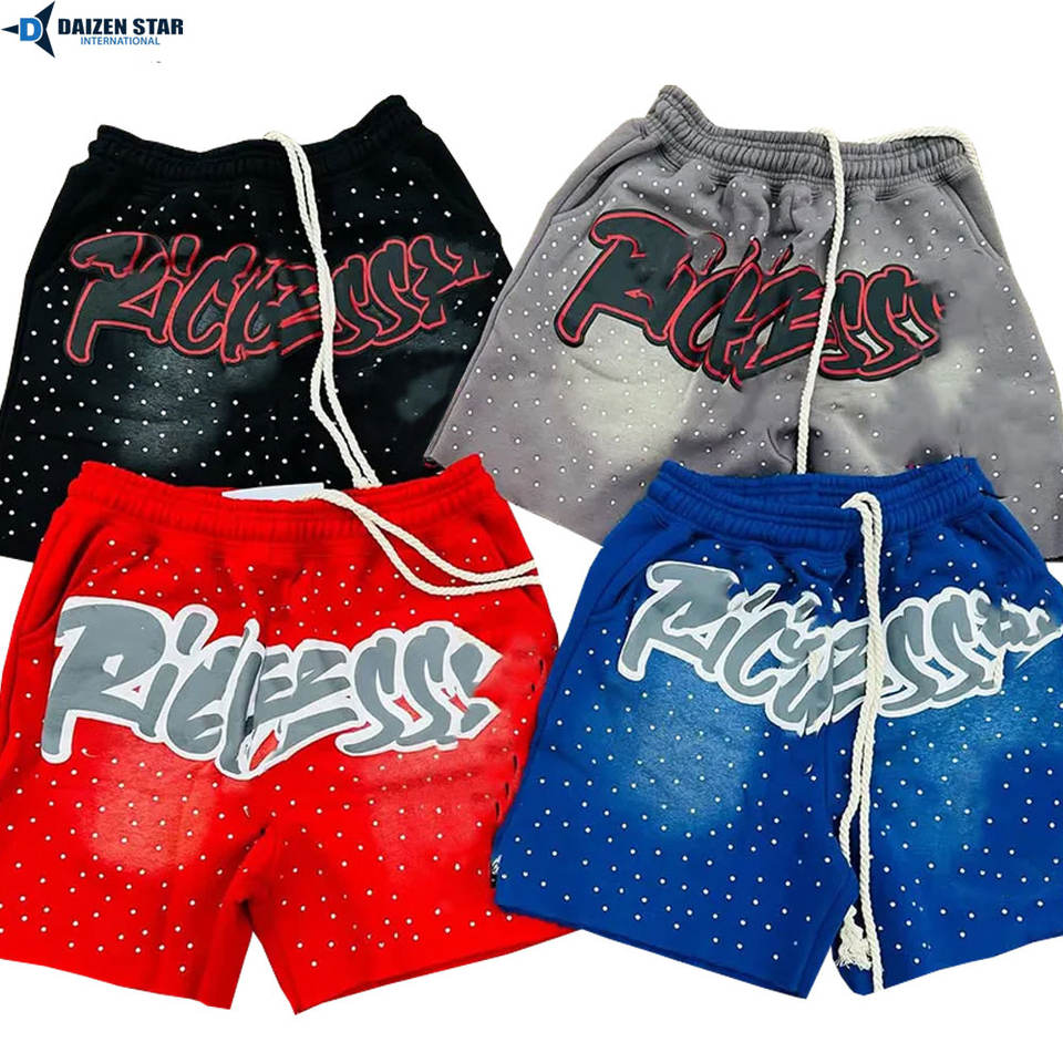 Shorts mi-longs en molleton de coton personnalisés pour hommes - Séchage rapide, respirants, écologiques, avec cordon de serrage, broderie, décontractés, marque privée, OEM, en gros, 240g
