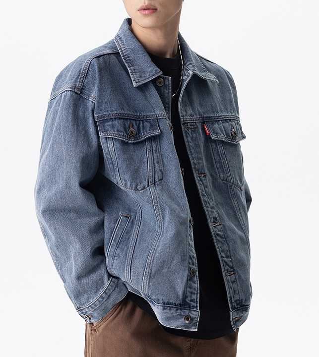 Veste en jean personnalisée pour hommes, élégante et décontractée de haute qualité avec poches latérales Veste en jean bleu clair pour hommes