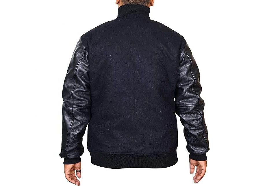 Veste bomber universitaire réversible en laine et cuir véritable écologique pour homme, coupe-vent, vêtements d'extérieur d'hiver, tissu denim