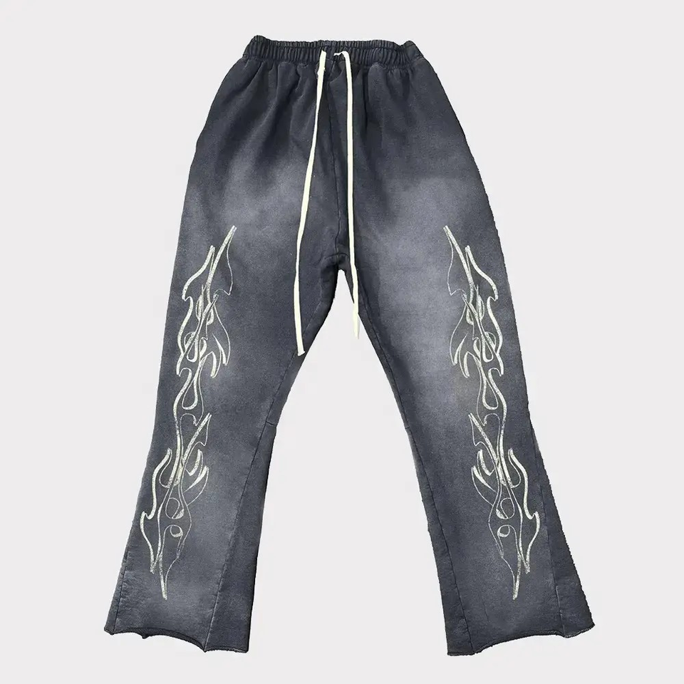 Custom Men's Flared High Quality Sweatpants 100% Cotton Unisex Baggy Cargo Pants Acid Washed Women's Stacked Joggers Sweat Pants