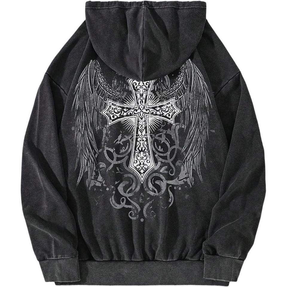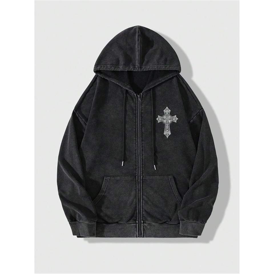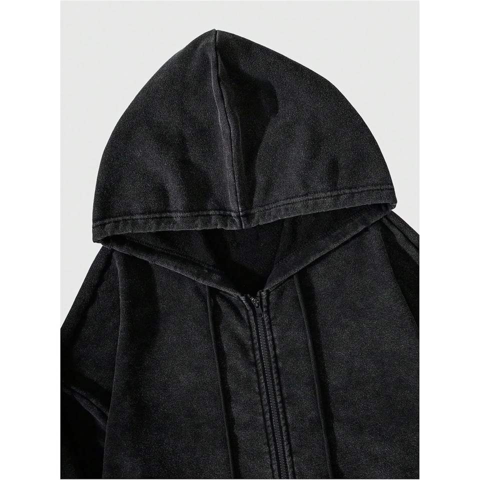 Sweat-shirt à capuche zippé gothique pour homme, coupe épaules tombantes, en molleton bouclette, vêtement d'extérieur