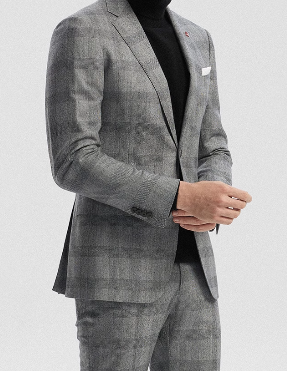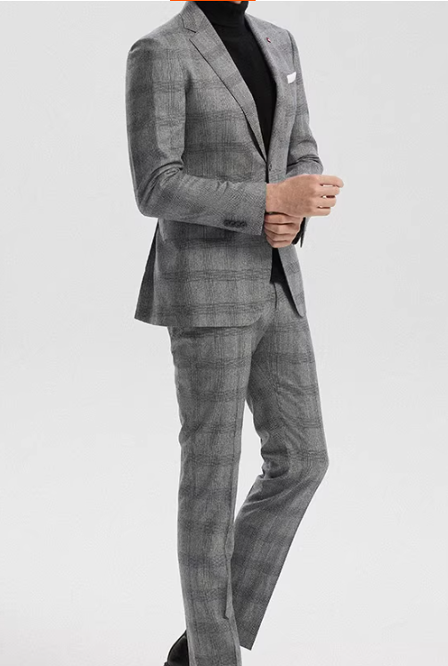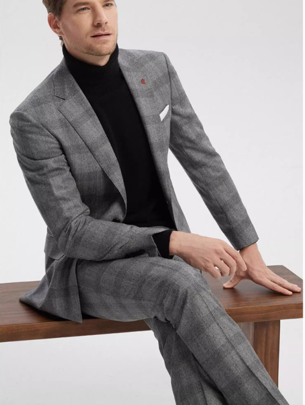 Costume de marié homme gris en tweed coupe ajustée 3 pièces avec veste, pantalon et gilet – Nouvelle Arrivée