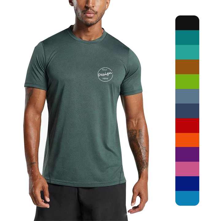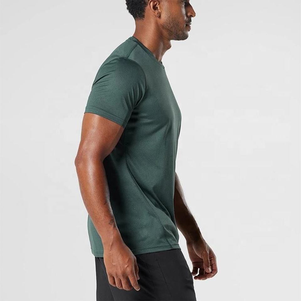 T-shirt de sport personnalisé pour hommes, coupe ajustée, séchage rapide, en polyester, col rond, conception en maille d'été, vêtements d'entraînement respirants, motif imprimé