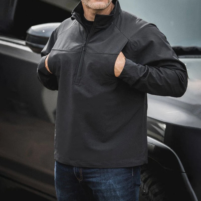 Haut de sport personnalisé pour homme, à manches longues, col montant, fermeture éclair, séchage rapide, coupe lourde, couleur unie