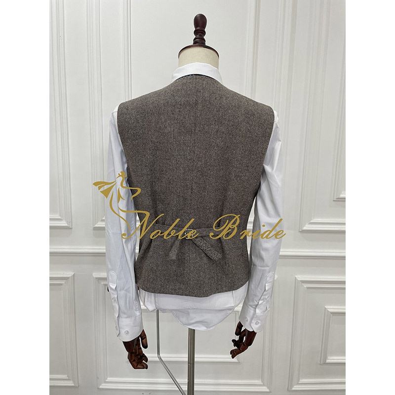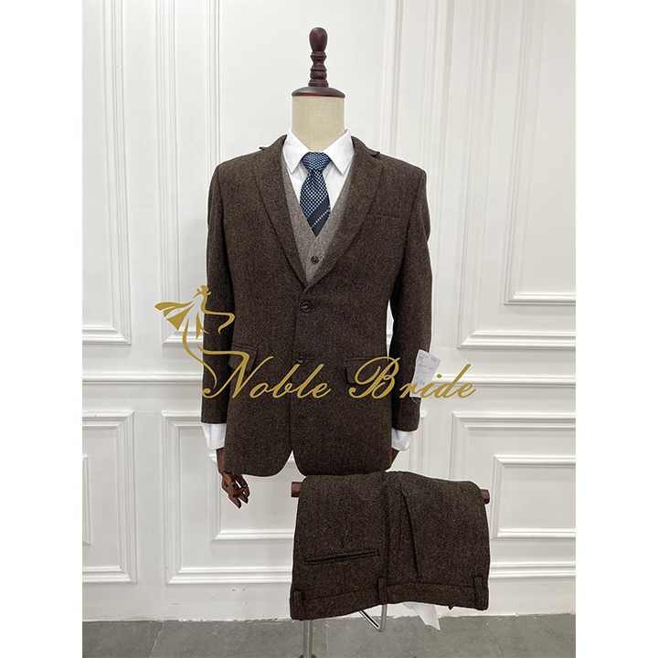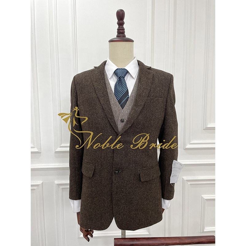 Costume 3 pièces en Tweed marron pour homme, veste et Blazer d'hiver coupe Slim à simple boutonnage, personnalisé et de haute qualité, prêt à être expédié