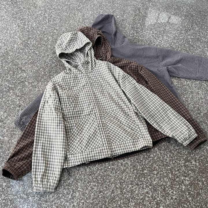 Vestes d'extérieur personnalisées pour hommes, de haute qualité, en coton 100%, à carreaux, à double couche, zippées, respirantes, réversibles, à capuche