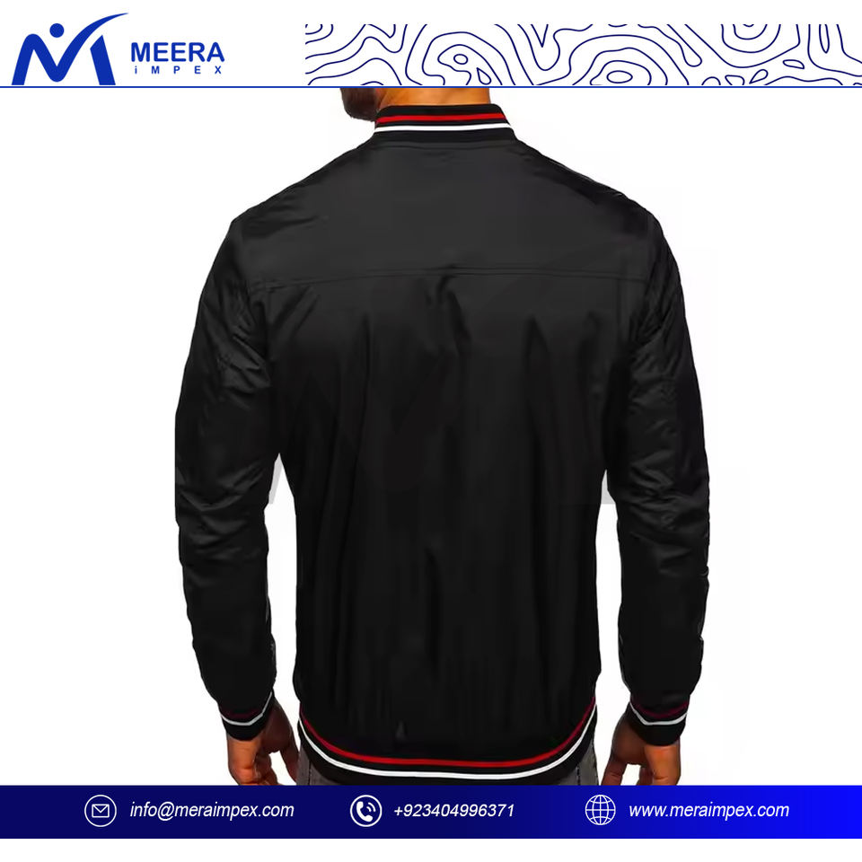 Custom Men's High Quality Windproof Zipper Bomber Jacket with Stand Collar Embroidered Logo Sports Team Winter Workwear Uniform