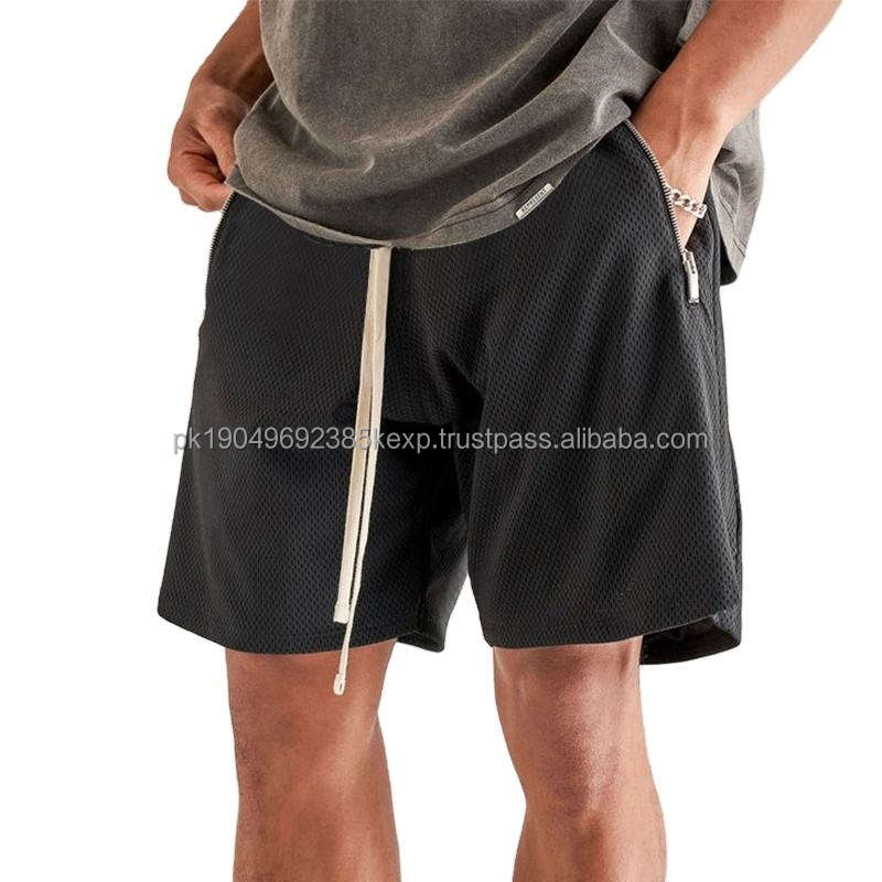 Short en maille avec poches zippées de haute qualité pour hommes Short de sport de gymnastique d'été Short en maille vierge respirant pour hommes