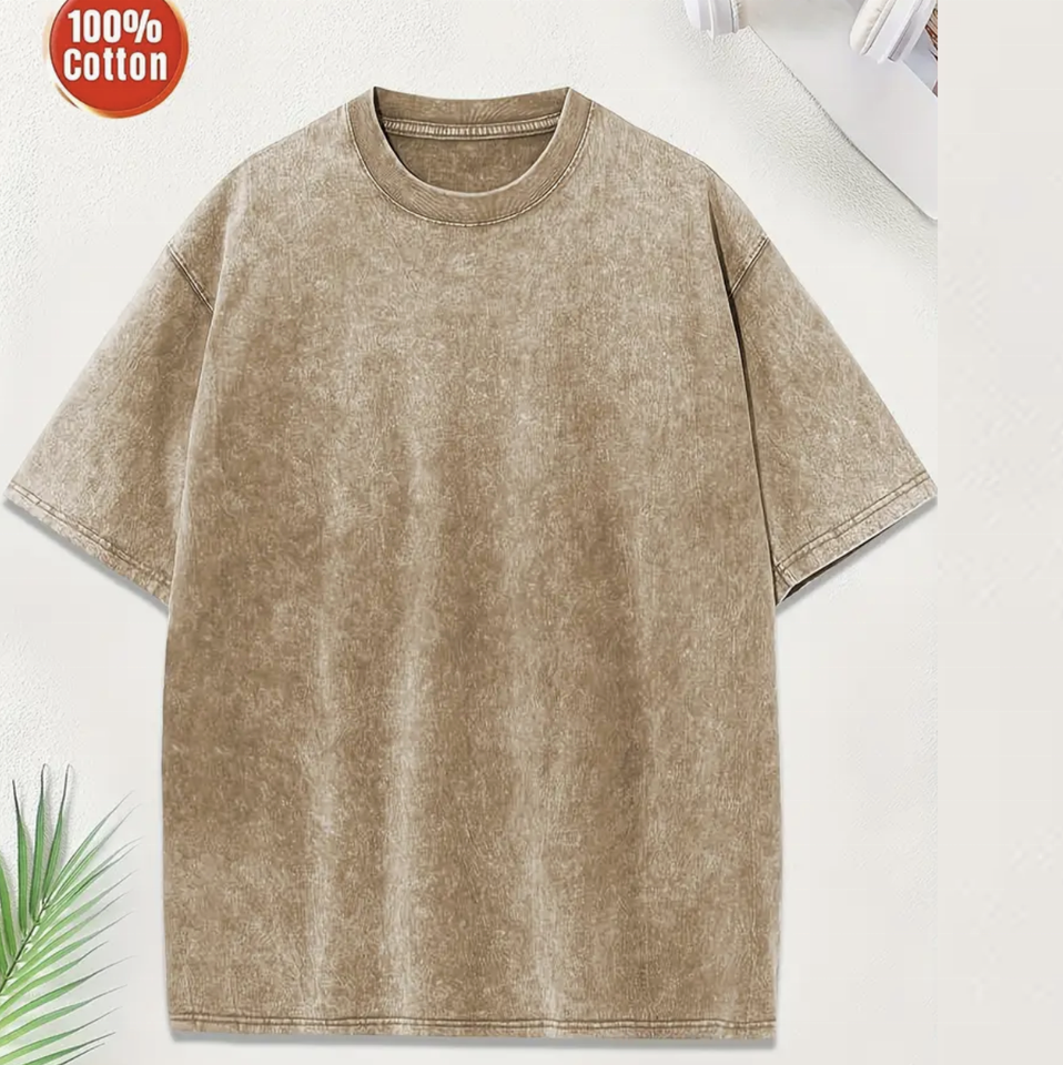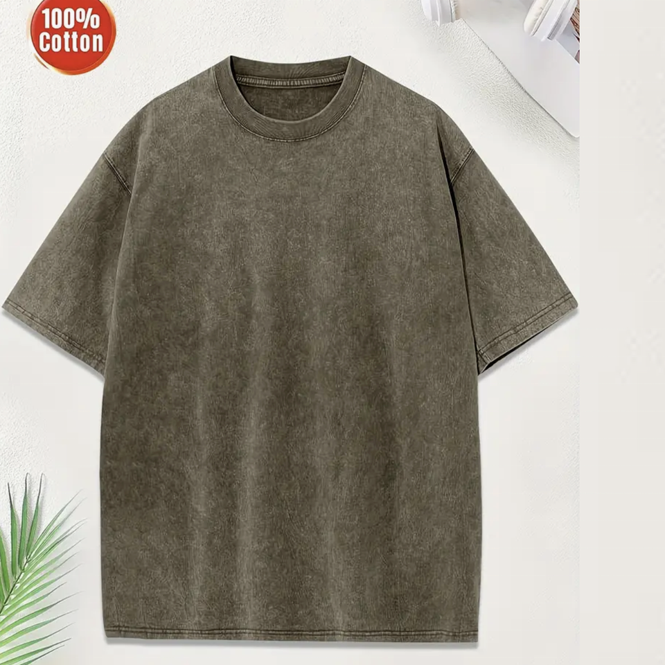 T-shirt Hip Hop personnalisé pour homme, délavé à l'acide, vintage, 100% coton épais, manches courtes, épaules tombantes, coupe classique, couleur unie, long