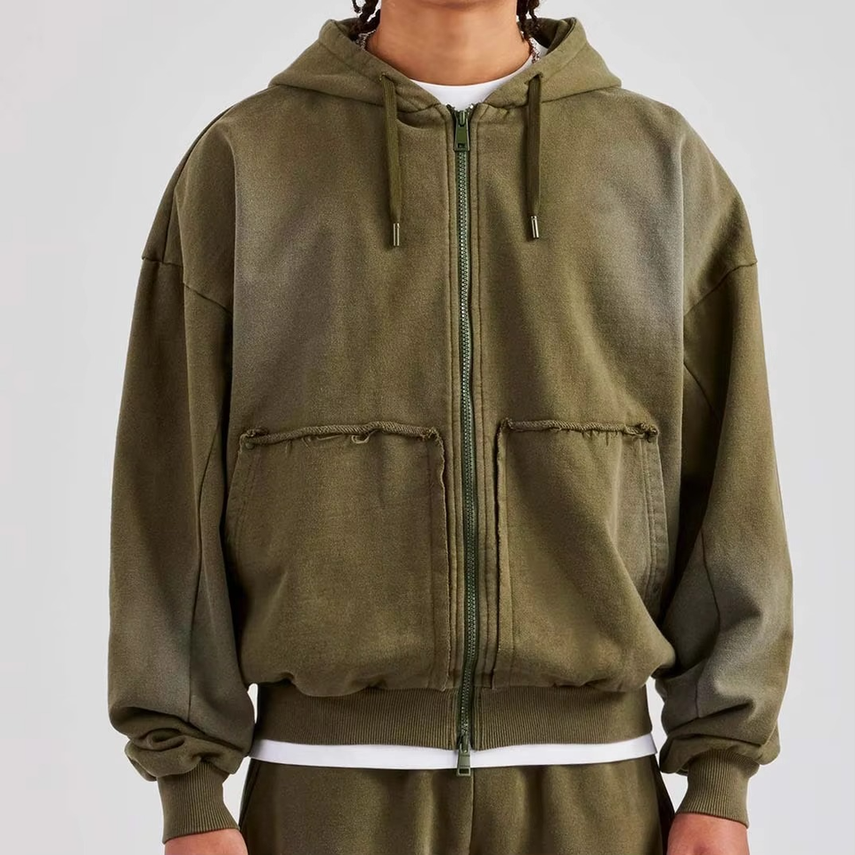 Keywords:High Quality Men Zipper Acid Wash Hoodie