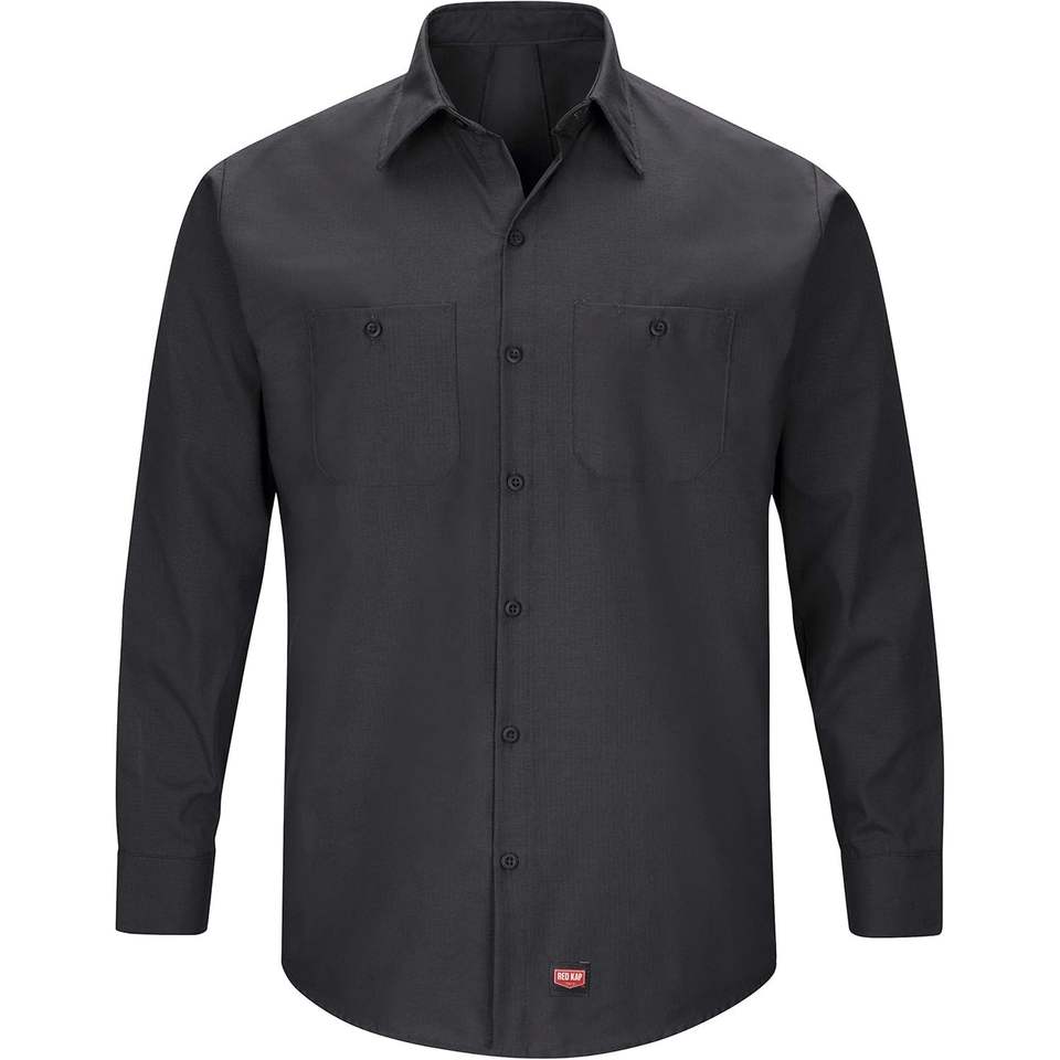 Chemise de travail Mimix à manches longues pour homme, grande taille/longue taille, combinaison de couleurs noir et rouge