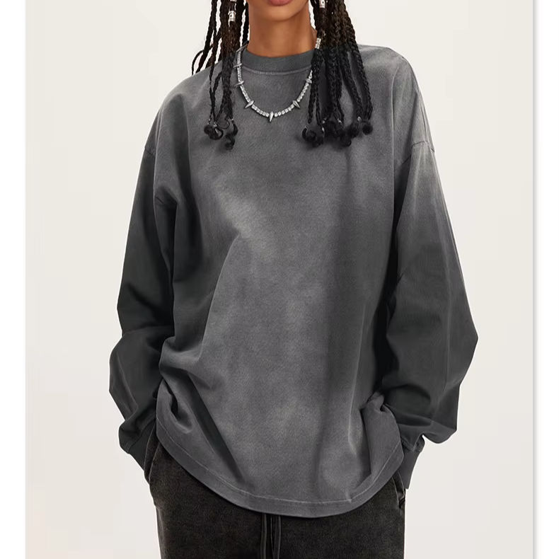 Custom Men's Luxury Vintage Acid Wash T-shirt 100% Cotton High Quality Heavyweight Blank Sun Faded Print Drop Shoulder Long