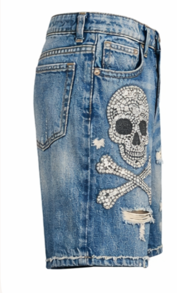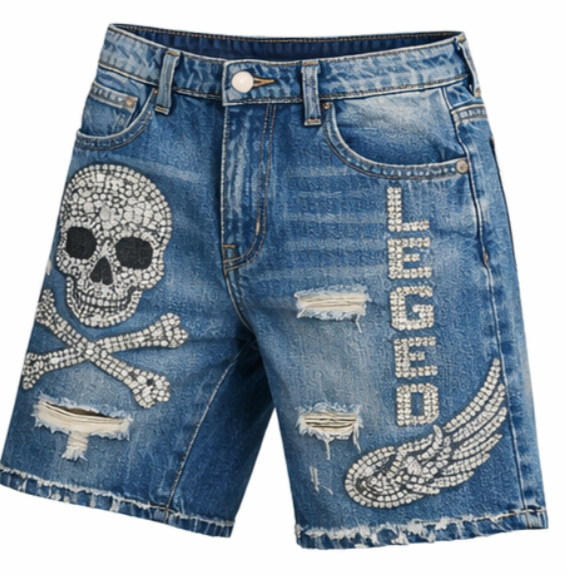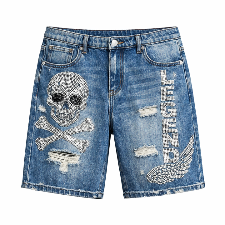 Shorts en jean pour homme, taille mi-haute, style Y2K, avec strass, lavage au sable, design décontracté, 100% coton, couleur et taille personnalisables