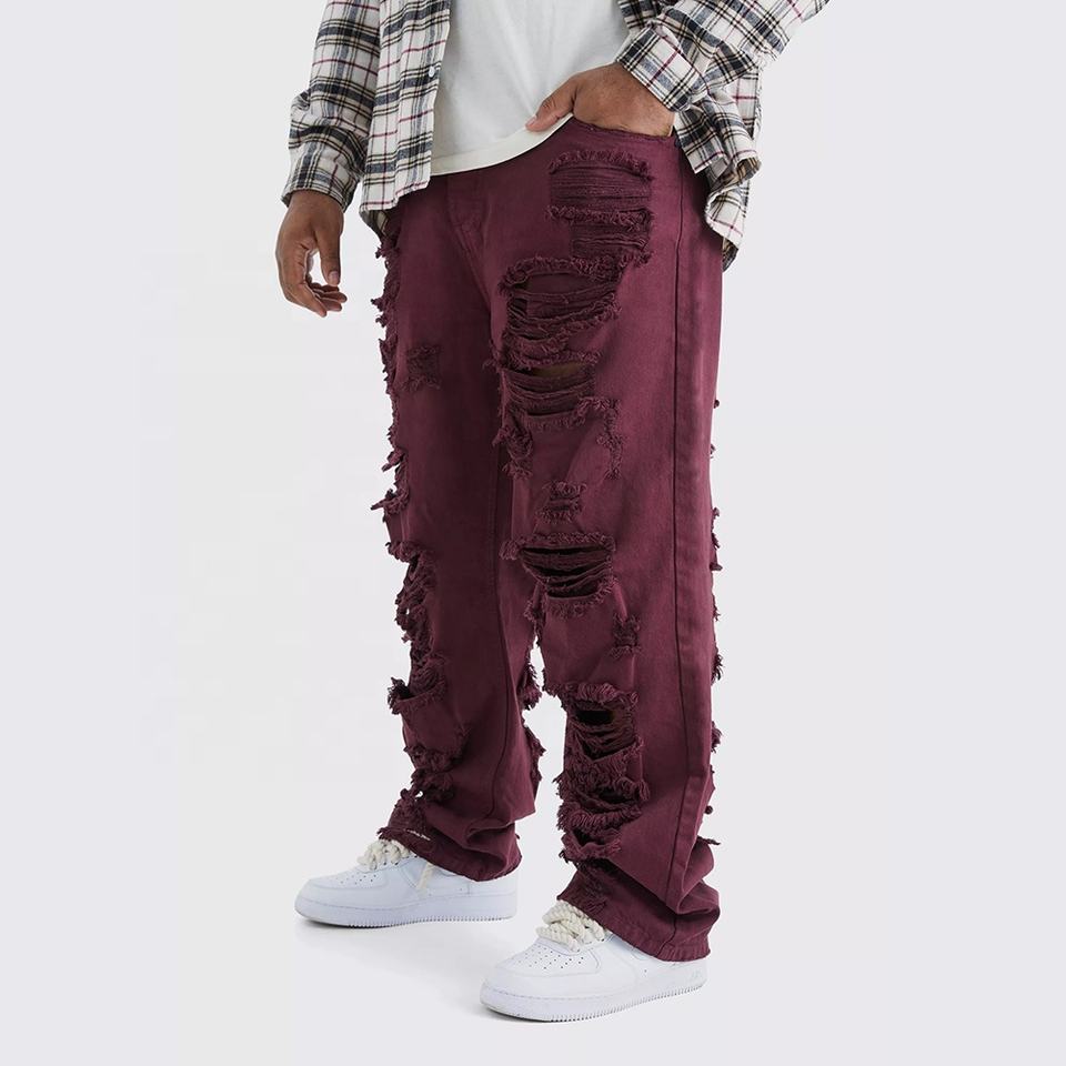 Nouveau Jeans droits baggy de grande taille pour hommes 100% pantalon en denim à taille haute en coton délavé vieilli à la taille moyenne