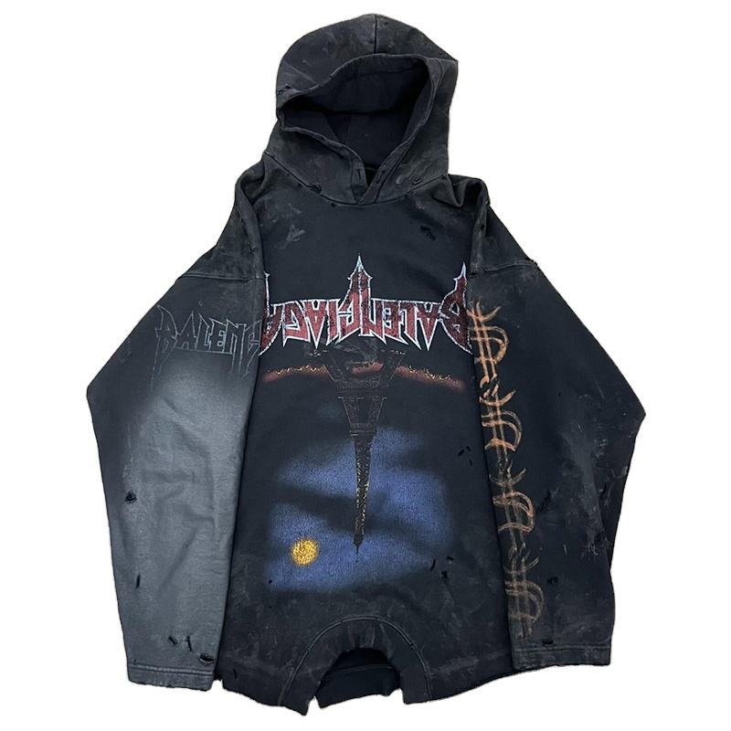 Sweat à capuche surdimensionné pour hommes 100% coton avec impression graphique Street Vintage Style-sans poche