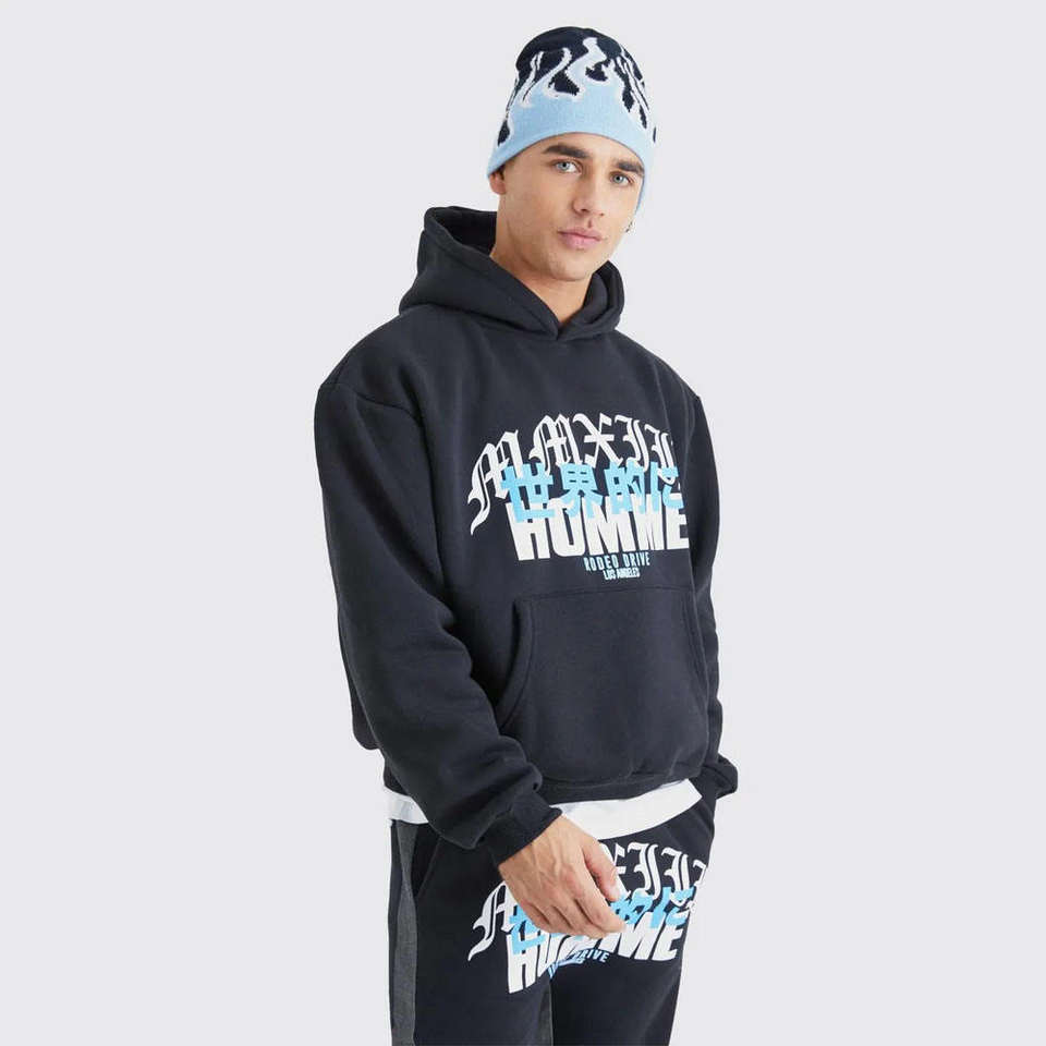 Sweat à capuche surdimensionné pour hommes en coton mélangé Sweat à capuche de haute qualité en éponge française avec motif 3D Pull-over à capuche