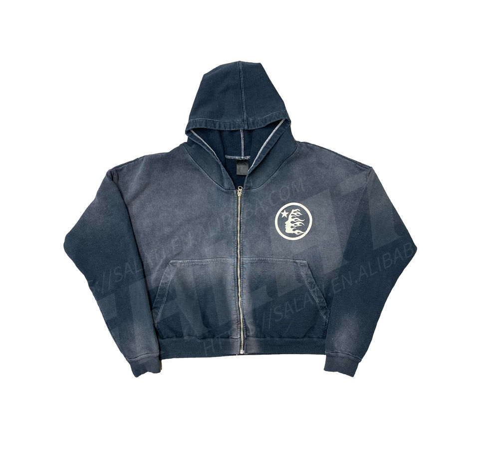Pull à capuche zippé surdimensionné pour hommes sweats à capuche vintage lavés en détresse lavés à l'acide hiver couleur unie