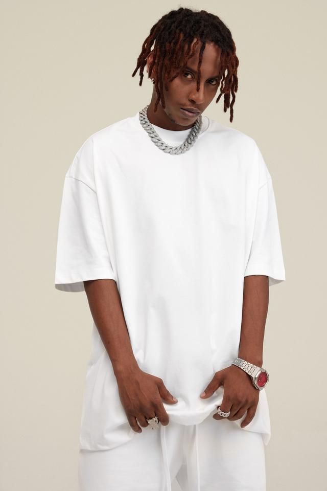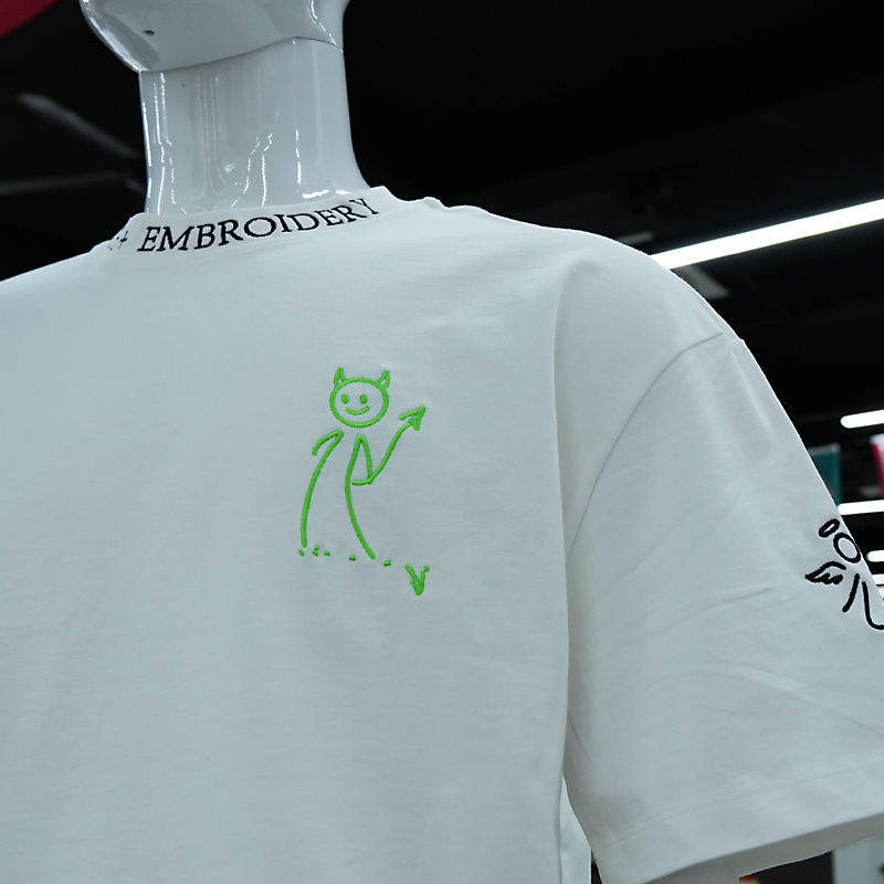 T-shirt surdimensionné en coton tricoté 100 % pour homme avec broderie chenille 3D, anti-plis et respirant