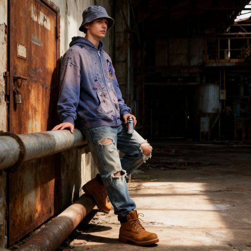 Sweat à capuche surdimensionné pour homme personnalisé avec effet délavé vintage, éléments déchirés et design imprimé créatif