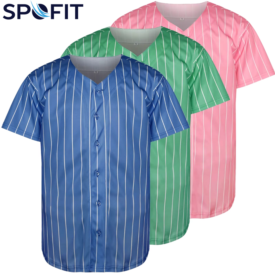 Maillot de baseball personnalisé pour homme, grande taille, col en V, entièrement boutonné, respirant, séchage rapide, imprimé par sublimation, vêtements de sport