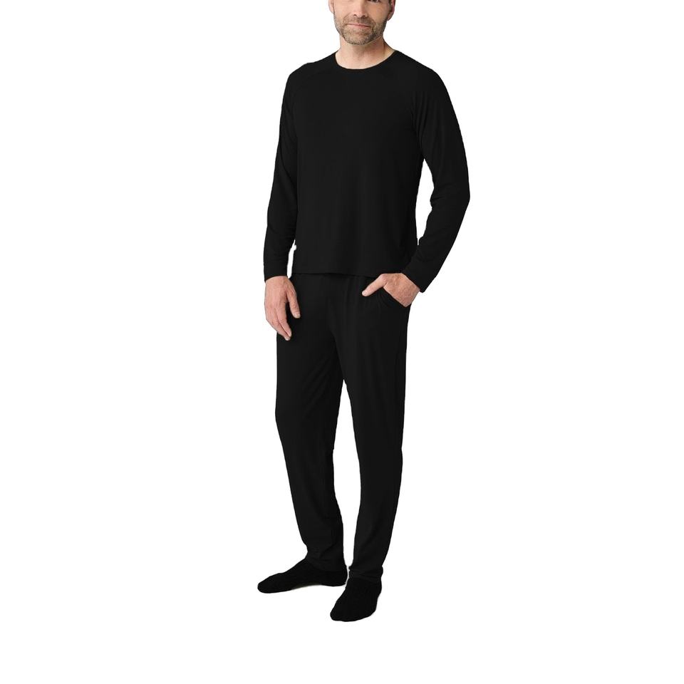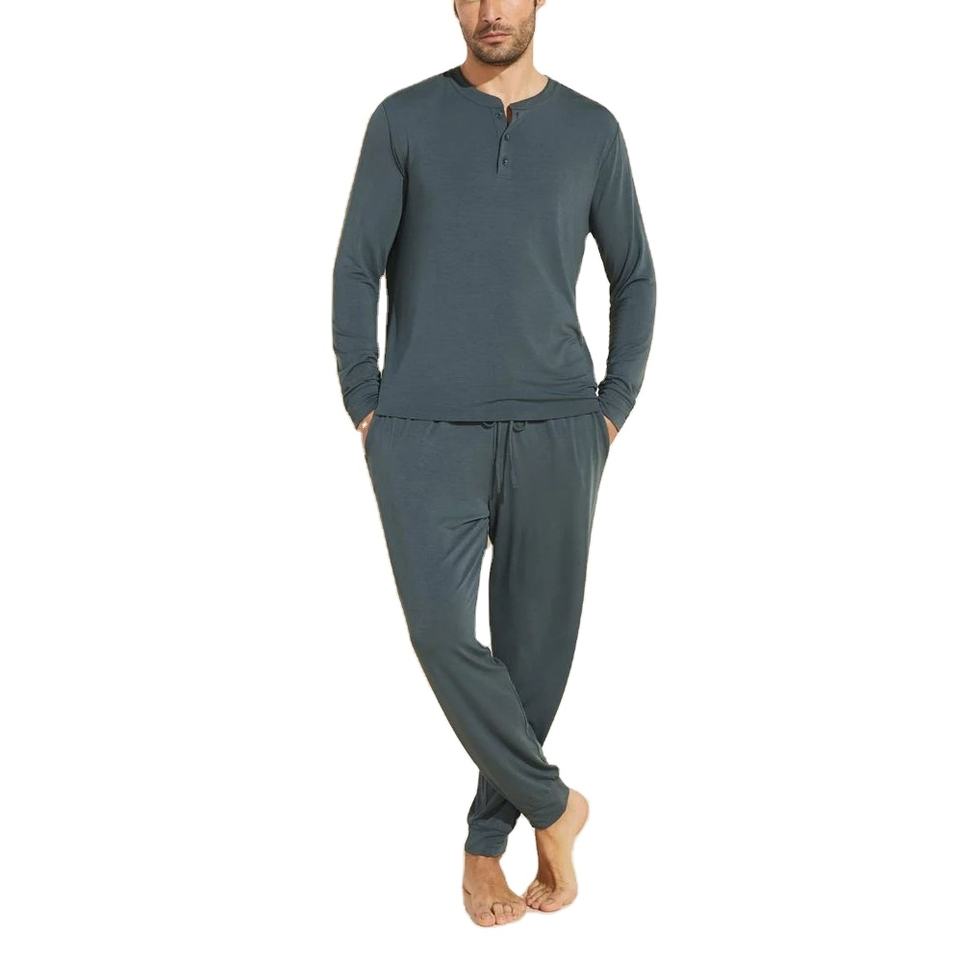 T-shirts en coton de bambou souple personnalisés pour hommes de taille plus ensemble de pyjama vêtements de nuit unis à manches longues pour l'exportation du printemps et de l'automne depuis BD