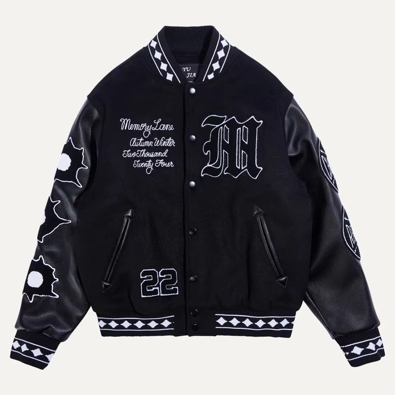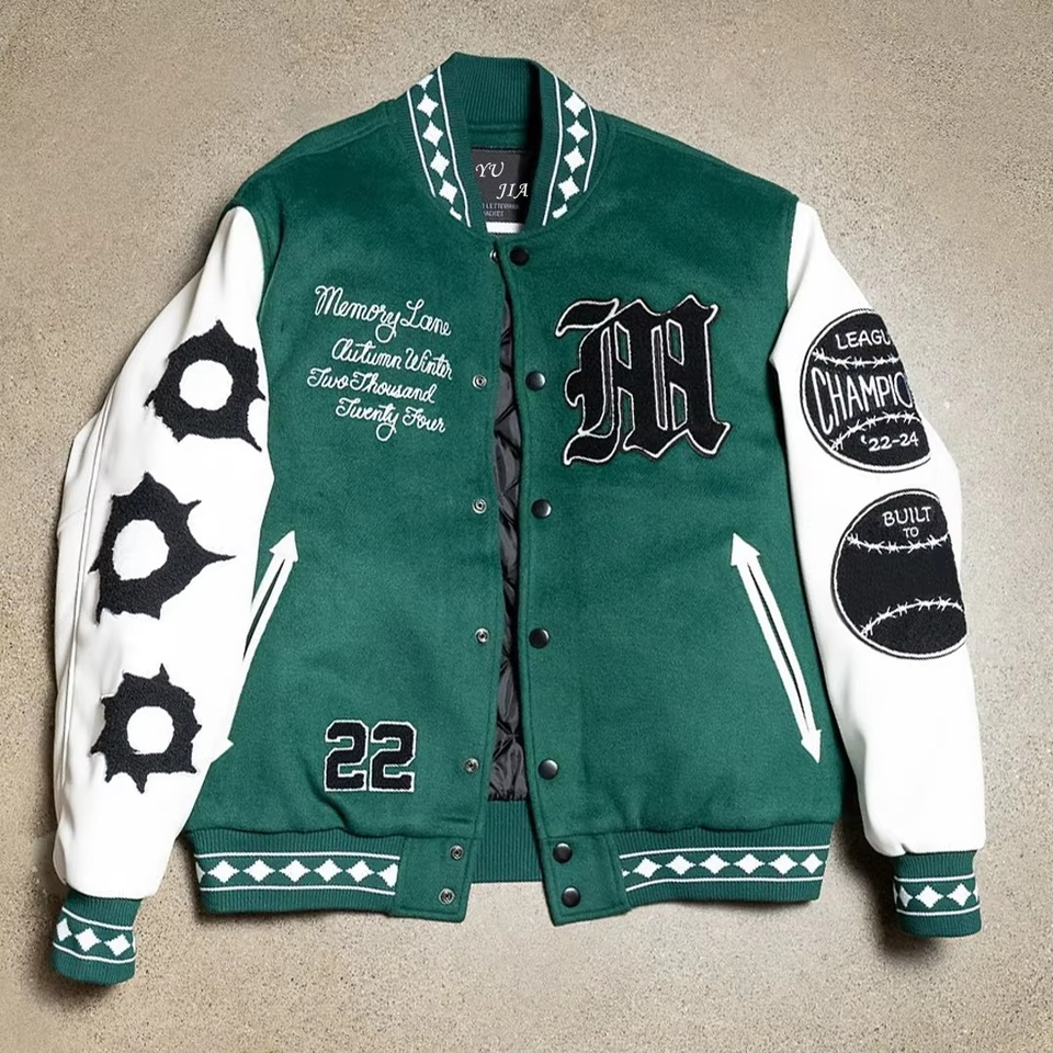 Veste universitaire sur mesure pour homme, grande taille, manches en cuir véritable, patchs en chenille de haute qualité, broderie, laine, style Letterman