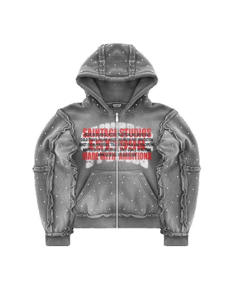 Ensemble surdimensionné personnalisé pour homme en polaire polyester lourd, délavé à l'acide, respirant, décoloré au soleil, avec strass et double fermeture éclair