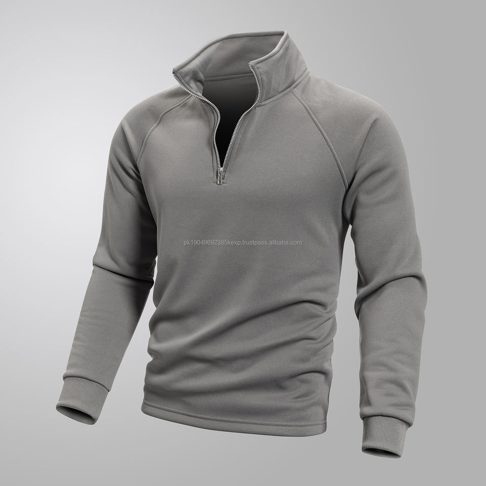 Custom Men's Porter Hoodie 14 Zip Mock Neck Polyester Cotton Fleece Pullover Sweatshirt for Jogging Printed Pattern for Autumn