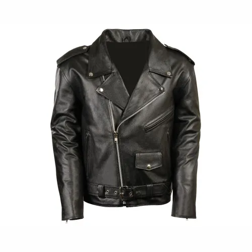 Custom Men's Premium Quality Cow Leather Winter Motorcycle Jacket with Embroidered Techniques Crew Neck Finished Processing