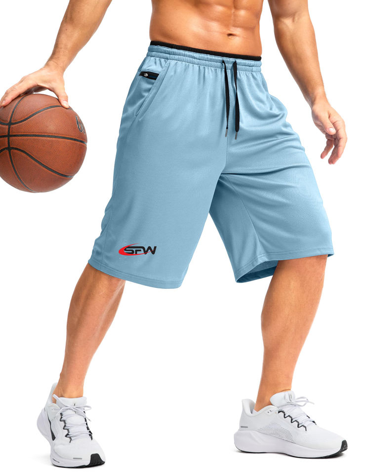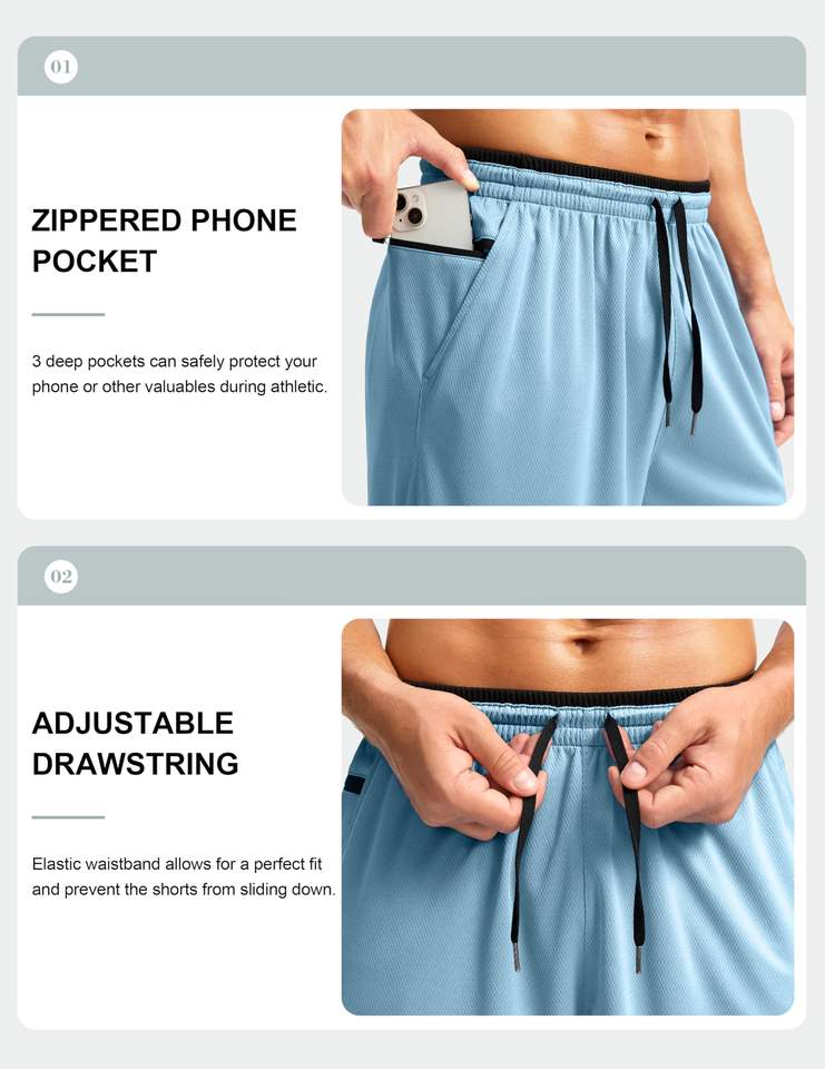 Shorts de sport cargo personnalisés pour hommes, en polyester à séchage rapide, respirants, pour fitness, course et basketball, avec logo frontal et braguette zippée
