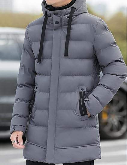 Veste d'hiver matelassée en coton pour homme sur mesure - Longue veste thermique à capuche avec poches zippées, coque en polyester/nylon, fusion sans couture