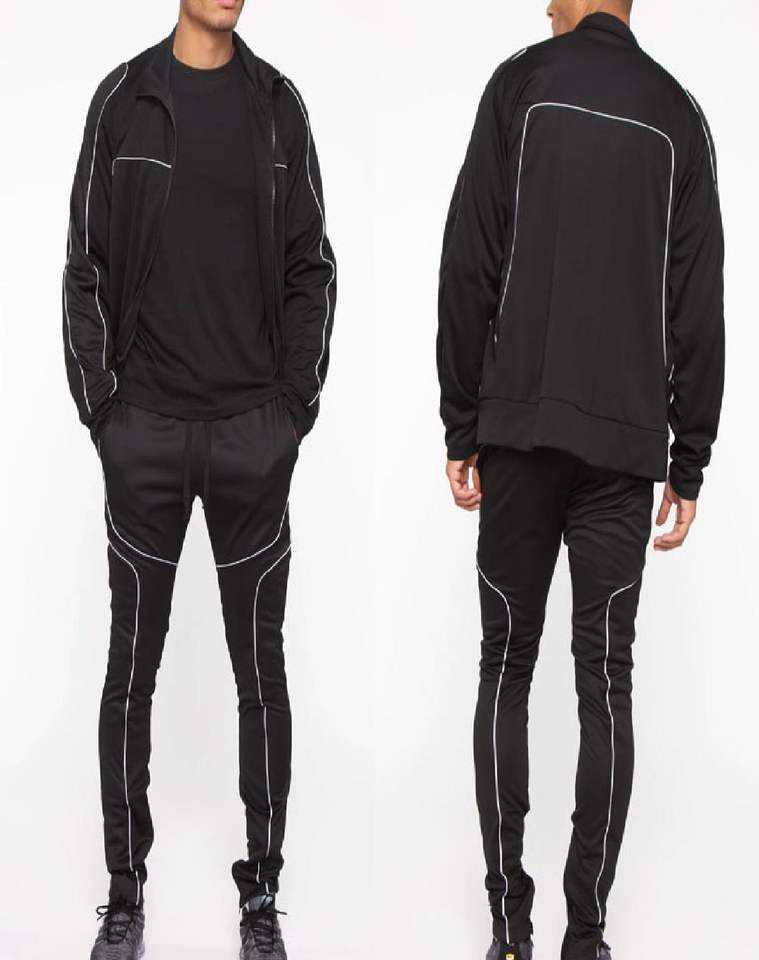 Ensemble de survêtement personnalisé pour homme avec passepoil réfléchissant, coupe ajustée, respirant, en nylon et polyester, pour le sport et le jogging, 2 pièces, OEM